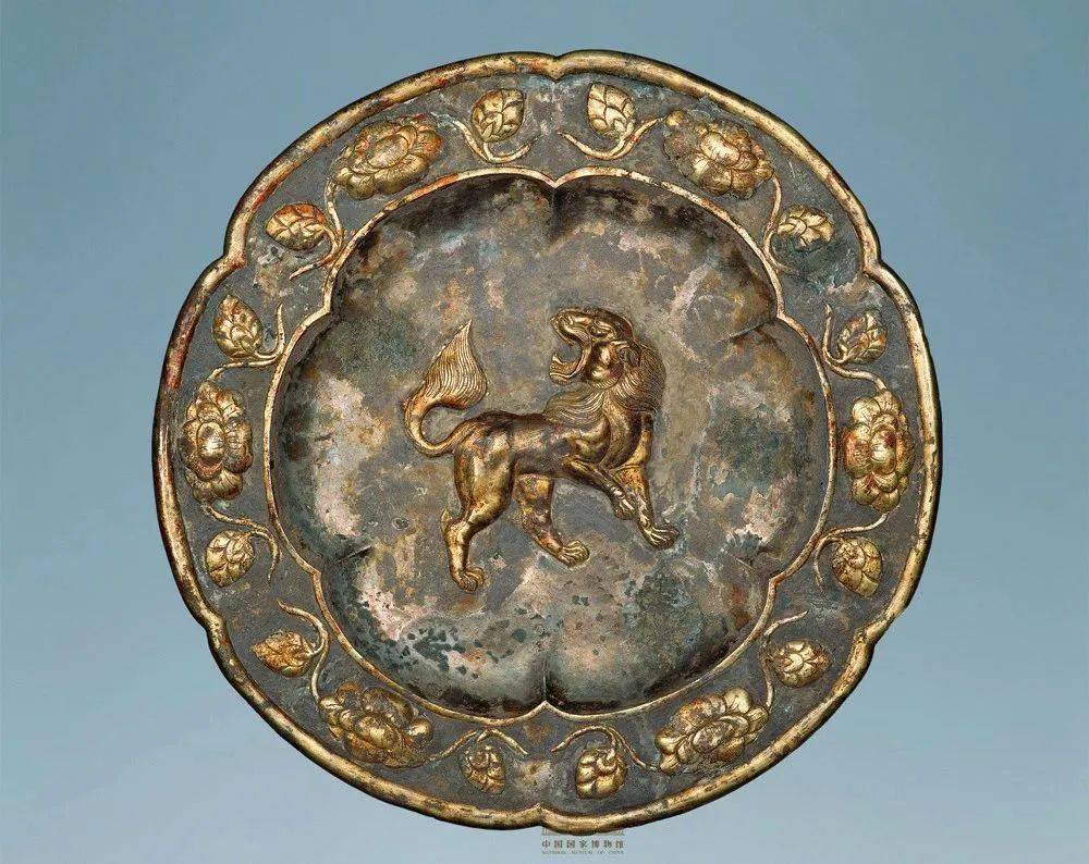 唐·葵口三足狮子纹鎏金银盘,高6.7厘米,口径40厘米,1956年西安八府庄出土,中国国家博物馆 藏(图源:国博君)