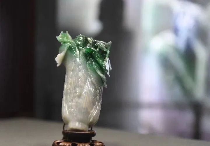 台北故宫博物院展出的清“翠玉白菜”(新华社记者 林善传 摄)