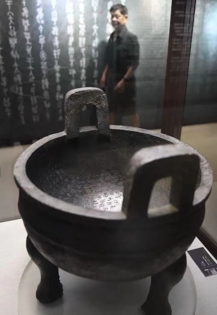 参观者在观赏台北故宫博物院展出的西周晚期的“毛公鼎”(新华社记者 林善传 摄)
