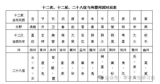 汉武帝后列代沿用分野对应表(无交州,即汉武帝平南越国,设交趾刺史部,位于今越南北部)