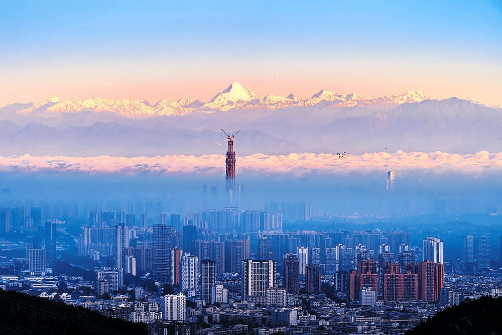 “雪山下的公园城市”。在成都,有一种生活方式,叫“在成都遥望雪山”,东看朝霞,西望雪山,杜甫那句“窗含西岭千秋雪”,如今已成了成都人阳台外一道不可或缺的常见风景。