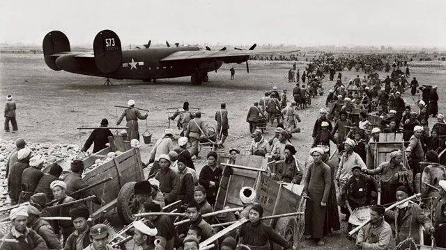 1944年,修建机场的民工(成都市新津区档案馆 供图)