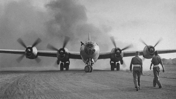 1944年,B-29重型轰炸机准备起飞(成都市新津区档案馆供图)