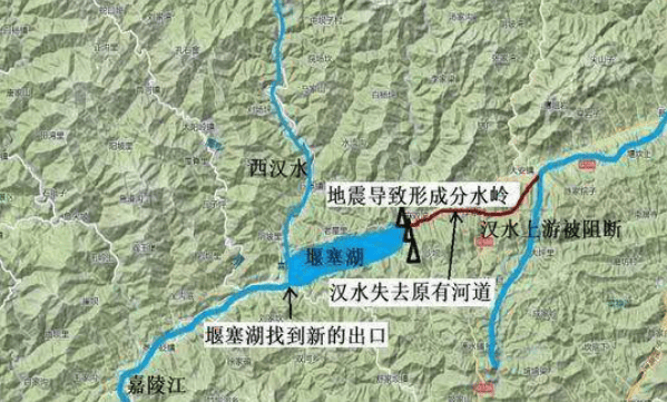 公元前186年(西汉吕后二年),西汉武都道(甘肃略阳)爆发了一次规模约为6-7级的地震,余震从年初一直持续到八月才停止。震中大概在今陕西略阳、宁强一带,导致今陕西宁强汉王山一带发生特别大的山体滑坡,滑坡把古汉水给阻断了,还在古汉水上游形成个规模超大的堰塞湖。截至前161年时,堰塞湖的水往南流然后溢出抢占了古潜水(历史上把嘉陵江也称作潜水)的河道往下泄流,还在龙门山以北的阳平关谷地形成了新的“大湖泽”。随着堰塞湖、“天池大泽”以及龙门山以北“大泽”依次消失,在南北朝时期联通了嘉陵江,到唐朝中期,嘉陵江“抢夺”古汉水上游的历史过程就完成了。即是说,汉朝初年,武都郡大地震导致略宁交界地的地形发生巨大变化,切断了西汉水东流的路径,导致西汉水被迫南下,汇入嘉陵江,史称:嘉陵夺汉。汉朝以前,嘉陵江的源头本来只有白龙江,而西汉江及其支流则自西往东,流入汉江,是汉江的源头。也就是说,汉江并非发源于汉中盆地,而是甘肃天水的嶓冢山,距汉中有近三百多公里,如此一来,在秦人眼里,便可以解释汉中为何被称为汉中。所以,古汉水上游的水系变迁是因河流的溯源侵蚀带来泥沙淤积,同时因大地震致使河道被堵塞之后堰塞湖水发生溢流侵蚀,从而造成河道改道所造成的结果。