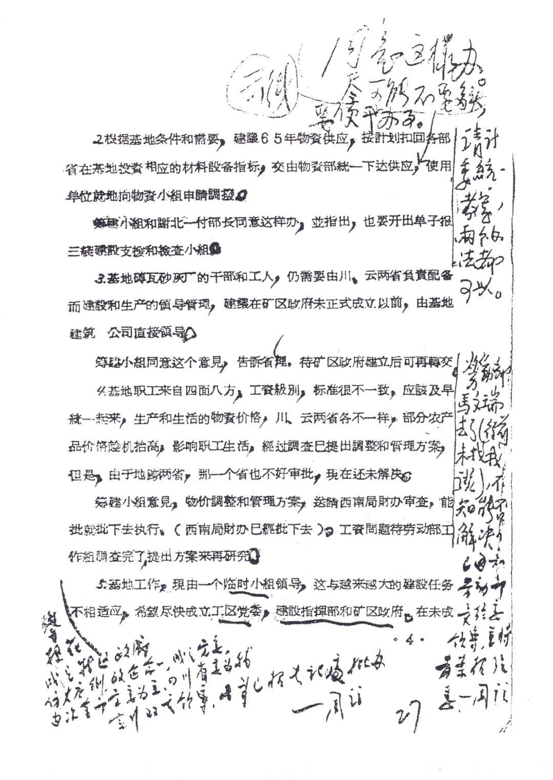 1965年1月19日,周恩来总理在工作简报上签批:攀枝花成立特区政府,仿大庆例,政企合一,成立党委,由冶金部党委为主,四川省委为辅,实行双重领导(攀枝花市地方志编纂中心 供图,图源:四川方志图库)