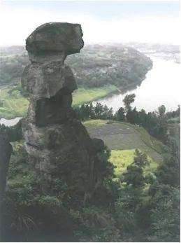 临近2024年元旦,忙碌了一年,终有闲暇,特约上对家乡历史有深度研究的本土作家陈谋勇,一起再登葛仙山。这次与以往不同,一行人放弃了坐车,绕道沿当年清代进士王果进山的路径,从沱江东岸一路前行。发源于川西北绵远河的沱江,穿出金堂峡之后,进入川南盆地丘陵区,河道就一波三折,回肠九曲,在庙坝堆积出三处长长的平坝。老陈一边走,一边向我介绍“侵蚀堆积起的葛仙山,又称文峰骏,由一岭八峰组成,分别是葛仙峰、铁盔峰、石盔峰、牛仔峰、文峰、牛颈峰、李子峰和石牛峰,峰峰相望,山山相连,奇石异峰,惟妙惟肖,很有情趣。”我停下脚步,站在龚家坝上,放眼望去,在约3平方公里的区域内,突兀地耸立一条串珠状的峰峦,呈现出山、丘、岭连绵的景象,好像一只凶猛的狻猊雄踞昂首向沱江猛扑过去,沱江因此弯曲着从北向西而东缠绕而过,像一条巨龙将它缠绕,给山色增添了许多灵气。“顿起诸峰峥嵘磅礴,郁为长岗,如狻猊蹲踞,昂首而赴于江,江为之曲”,百闻不如一见,文里文外一对比,果真与王果在《大葛仙山记》中的描述丝毫不差!