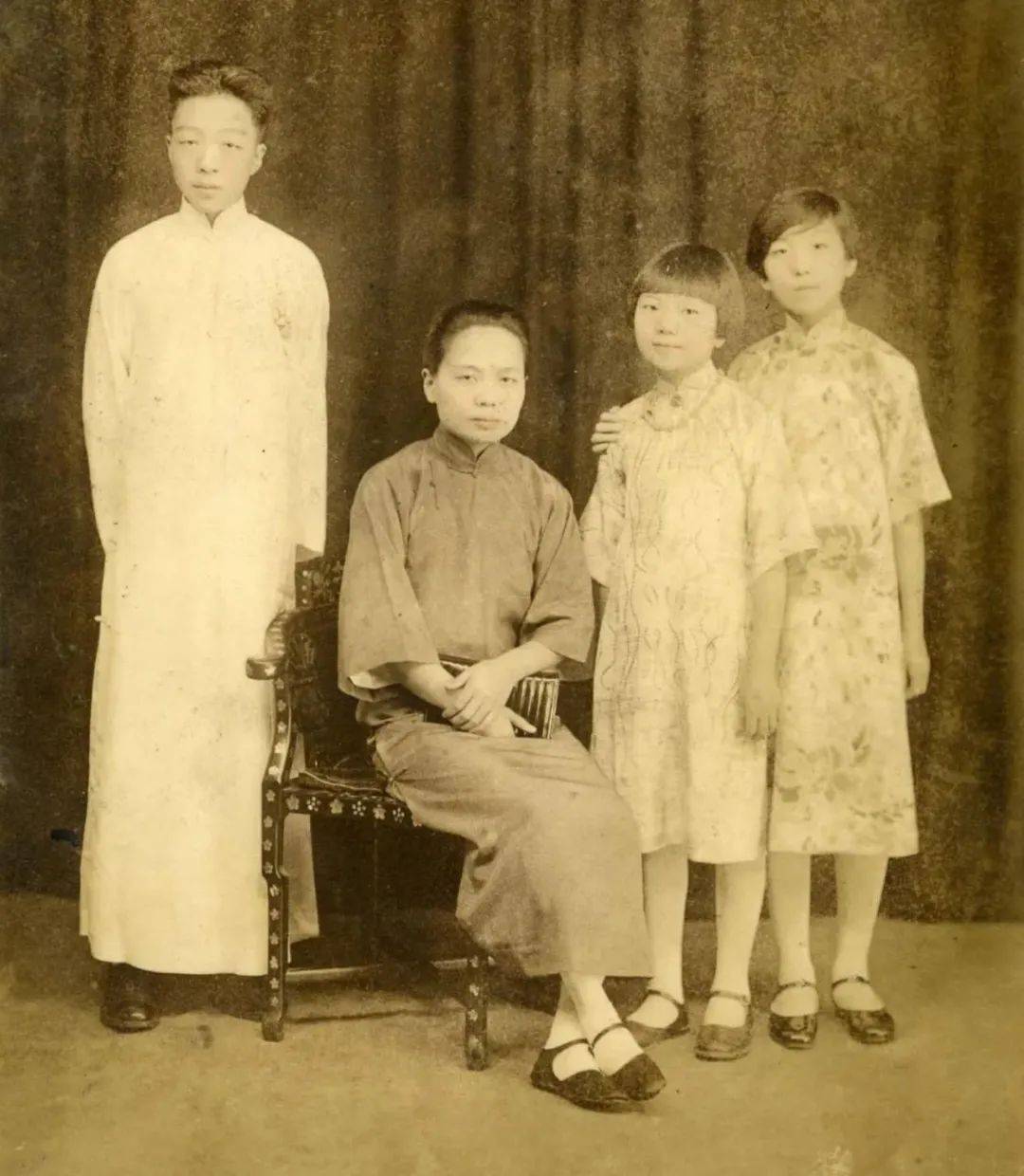 杨苡(右二)与母亲、哥哥杨宪益(左一)、姐姐杨敏如(右一)的合照。(来源:《一百年,许多人,许多事》)