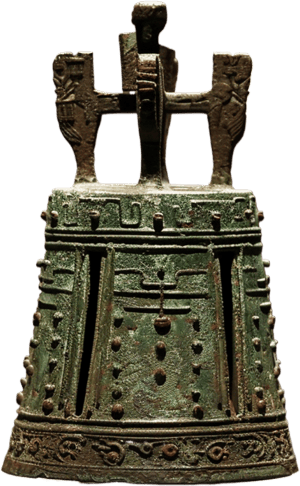 《华阳国志·蜀志》云:“(鱼凫之)后有王曰杜宇,教民务农,一号杜主。时朱提有梁氏女利游江源,宇悦之,纳以为妃。移治郫邑,或治瞿上。七国称王,杜宇称帝,号曰望帝,更名蒲卑。自以功德高诸王,乃以褒斜为前门,熊耳、灵关为后户,玉垒、峨眉为城郭,江、潜、绵、洛为池泽,以汶山为畜牧,南中为园苑。会有火灾,其相开明决玉垒山,以除水害。帝遂委以政事,法尧、舜禅授之义,遂禅位于开明,帝升西山隐焉。时适二月,子鹃鸟鸣,故蜀人悲子鹃鸟鸣也。巴亦化其教而力农务,迄今巴、蜀民农时先祀杜主君。”有专家兴许有鉴于此,便认为杜宇之城倾覆于水灾,今三星堆遗址即其残留。明人刘基《郁离子》书里有这样一则寓言:“昔者,蠪蚳暴于岷嶓之间,蜀王使相回帅师伐之,畏弗进,作土门而壁焉。其士卒日食于民,民瘵弗堪。于是,五丁凿山,以出于江之源,擒蠪蚳杀之。相回闻蠪蚳之死也,毁壁而出,取其尸以为功,曰:‘我之徒兵实杀之。’五丁怒,杀相回,排天彭而壅之江,江水逆流,覆王宫,王升木而号,化为杜鹃”,似已肇启此说。然而目前并未在遗址内发现大规模的洪水痕迹,似乎可以据此推测,三星堆人的放弃城池、掩埋重器而迁离应该不是由洪水导致的。