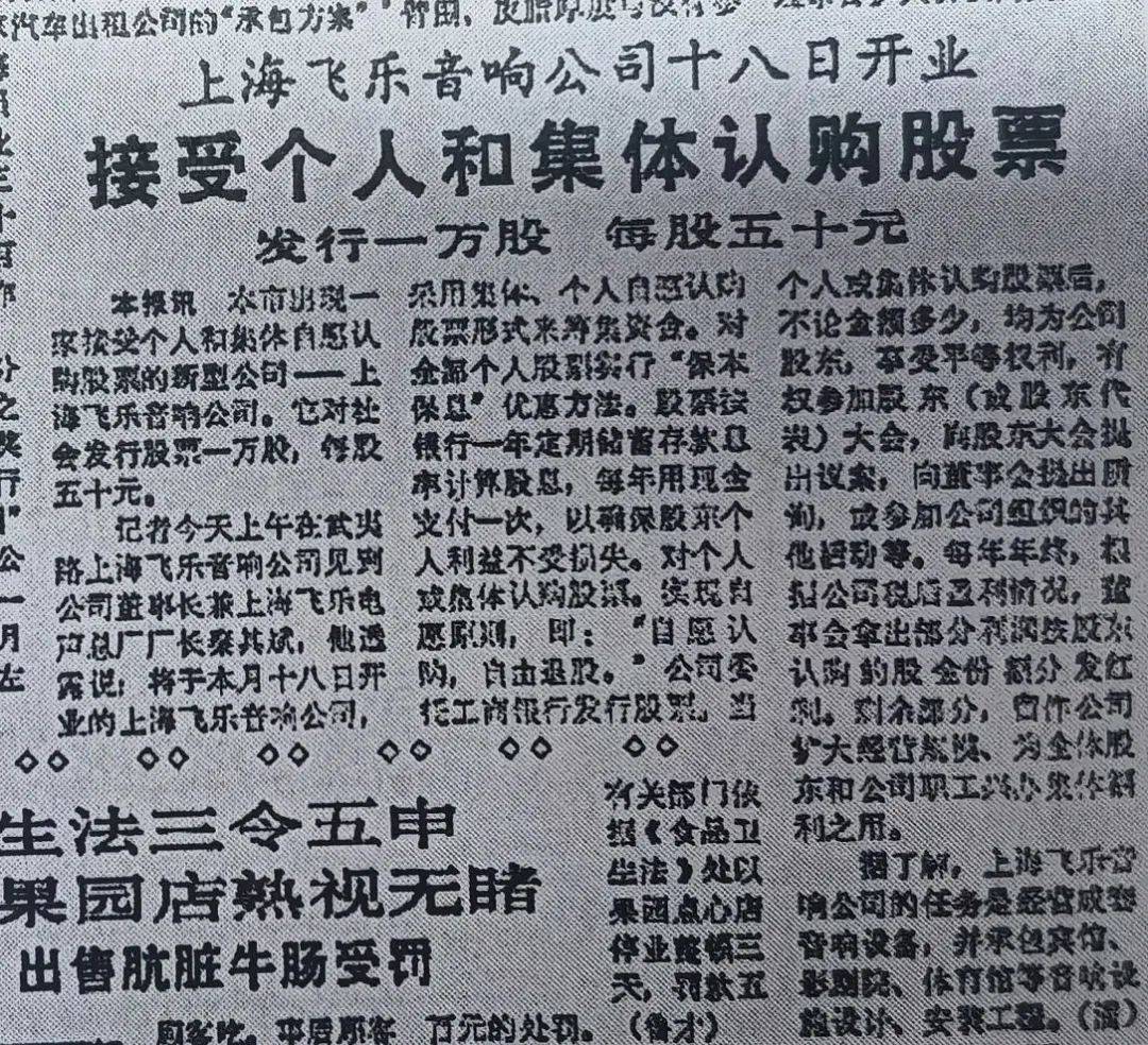 1984年11月15日,《新民晚报》关于飞乐音响公司发行股票的报道。