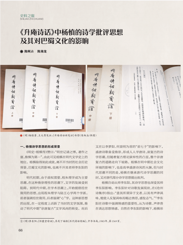 【文史英华】《升庵诗话》中杨慎的诗学批评思想