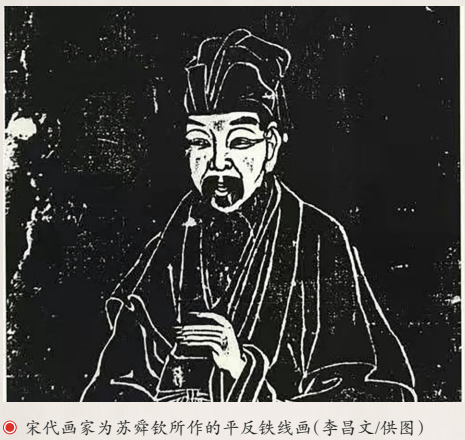 苏舜钦(1008—1048),字子美,祖籍梓州铜山(今四川省中江县广福镇),其高祖苏季在五代时任铜山令,遂世居铜山。其祖父苏易简为北宋蜀中第一名状元,太宗时官至参知政事,其父苏耆,宋真宗景德四年(1007)进士,官至河东转运史,其母为宋真宗时名相王旦之女,其岳父杜衍为宰相,苏舜钦“少慷慨,有大志,状貌魁伟”,为人清介耿直,是北宋文学家、书法家,同梅尧臣并驾齐驱的诗文革新运动先驱,爱国诗人,属“庆历新政”中的激进派,曾留下“汉书下酒”的文学佳话。宋仁宗天圣(1023—1032)初年,以父荫补太庙斋郎,宋仁宗景祐元年(1034),举进士,授光禄寺主簿,知安徽蒙城县,到任伊始,即“杖杀一黠吏”,为民除害。《宋史》说他“好为古文、诗歌,纵论时政得失,其体豪放惊人”。相对于宋初卑弱萎靡的诗风,是一种清新振奋的力量,苏舜钦与欧阳修、梅尧臣等一道,代表了宋诗革新的方向,标志着宋代新诗风的确立。苏舜钦还善草书,“每酣酒落笔,争为人传,一时豪俊多从之游”。宋仁宗曾两次采纳他的参劾王随及每日御前殿视事的上疏建议。他曾冒死向皇帝上《诣匦疏》,指出“朝廷政教昏迷,下受其弊”,因此遭人忌恨,在集贤院校理、监进奏院任上被朝廷保守派陷害,弹劾罢官,削籍为民,流寓苏州,构筑沧浪亭隐居,后被重新启用为湖州长史,惜未赴任而卒。著作有《苏舜钦集》,计收诗歌212首,散文70篇,书迹《今春贴》《留别王原叔古诗贴》及补书中国第一草书怀素的《自叙贴》成为书法至宝。欧阳修称赞苏舜钦“其人独憔悴,其志独轩昂”。陆游赞叹苏舜钦的草书:“字大如斗健欲飞,利刃猛斫生蛟螭,墨渴字燥尤怪奇,百魅潜影神灵悲。”刘克庄评价:“二苏(弟苏舜元亦为北宋著名书法家)草圣,独步本朝。”