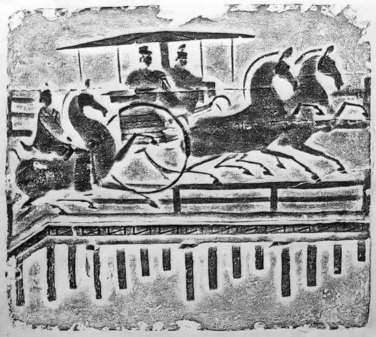 “车马过桥”画像砖拓片(图源:四川博物院)