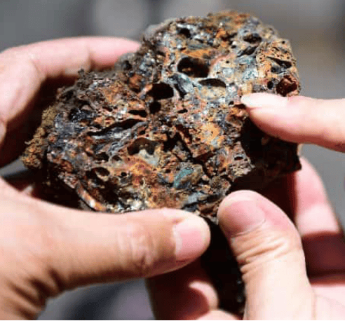 考察队在严王扁周边密林探寻两千平方米,探寻范围内地下全是铜哨子。在我们休息小坎包边铜哨子出露深度近1米,挖了一下,无法探底。向导介绍,再往前走,路难走,上面还有几个出露的堆渣场,一直到严道古城陡岩绝壁下的羌炉房,都是堆渣场。考察队决定不再前行,大家选取了一些标本,原路返回。