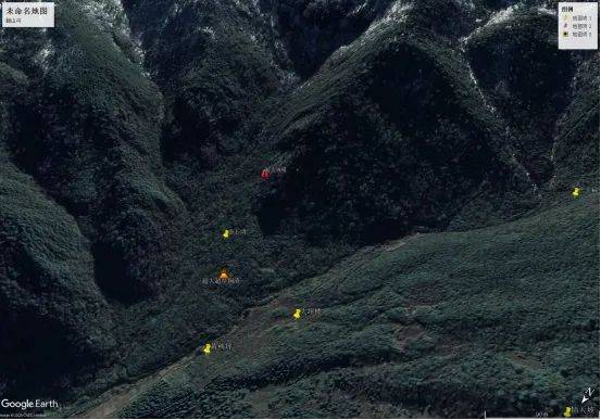 再往上1公里到达水电站,这里是通车公路尽头。从电站右上方开始徒步沿密林中小路上山。几分钟路程后,小路上能看到大量铜硝子和铜冶炼钳锅残片。约爬山25分钟后,到一块竹林坡地,周围这一片叫严王边。这里可视性较好。队员们一边休息一边观察四周,王玲龙放飞无人机观察,2分钟后,无人机飞到300米高度正常摄影,图像清晰,突然无任何预兆情况下,无人机旋转下坠失踪(该地多次发生无人机失踪事件)。