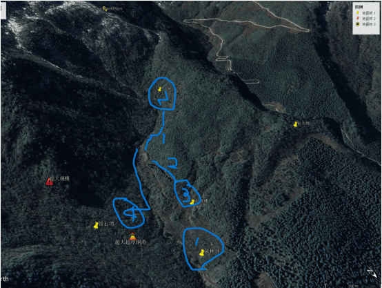 因无人机失踪,林区没有信号无法定位,到4号点时,考察队员们并不知道我们已身处带石塆这个超级堆渣场的内部边缘。