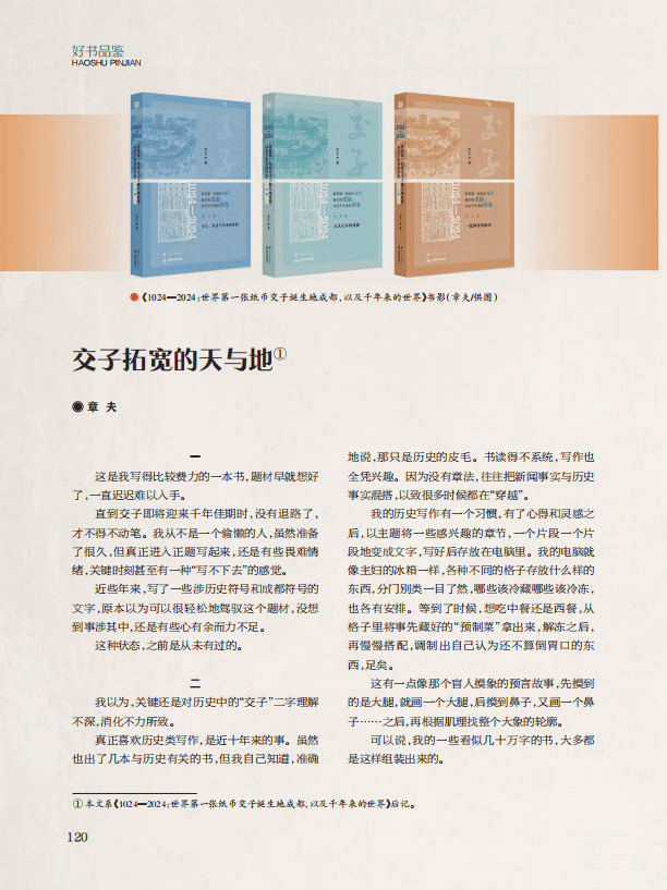 直到交子即将迎来千年佳期时,没有退路了,才不得不动笔。我从不是一个偷懒的人,虽然准备了很久,但真正进入正题写起来,还是有些畏难情绪,关键时刻甚至有一种“写不下去”的感觉。