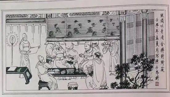 陈子昂当年在长安宴请诗友,射洪画家作。