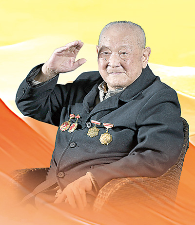 抗战老兵刘寿山敬礼。新华社记者 胥冰洁摄