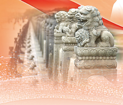 卢沟桥上的石狮子。新华社记者 张晨霖摄