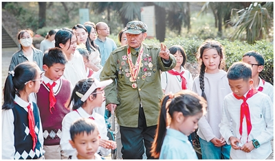 抗战老兵鲍启太为中小学生讲述战斗故事。张 妍摄