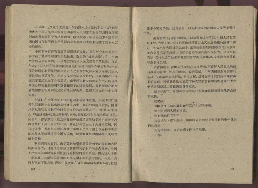 1959年,周恩来总理在欢迎阿富汗王国副首相钠伊姆亲王宴会上的讲话。