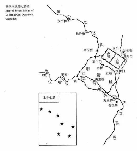 成都的江流多为人工开凿,李冰任蜀郡(今成都一带)太守期间,除修建都江堰水利工程外,也对成都的江流进行了开凿和治理。