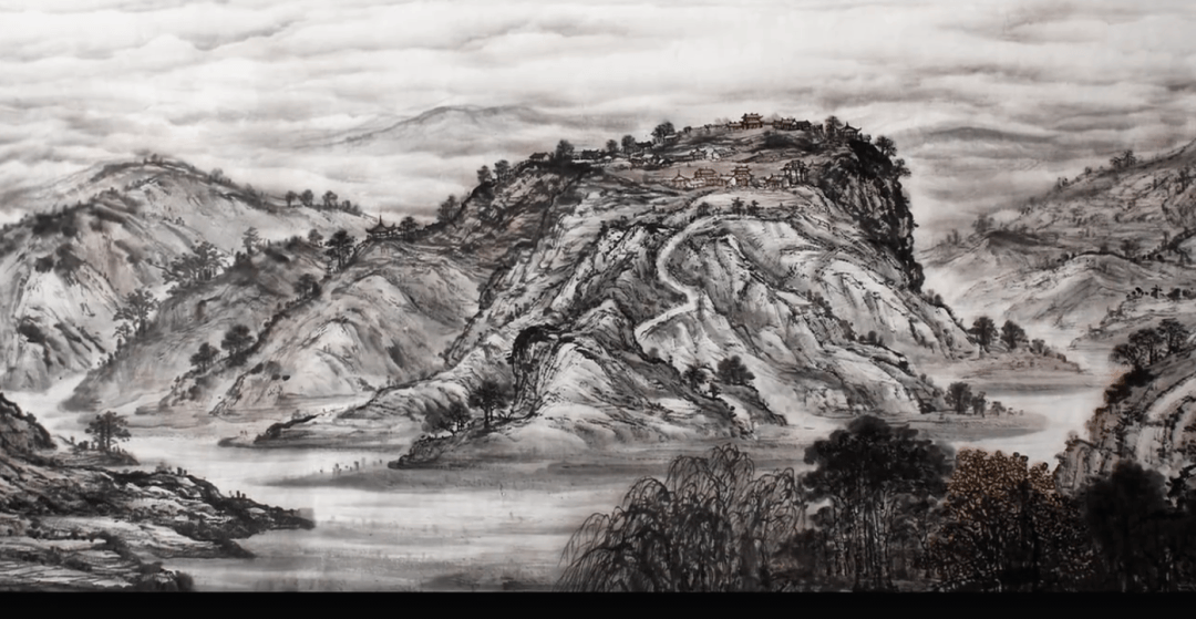 陈世明国画山水长卷《荣州十二景》之清富登临(图源:陈世明国画工作室)