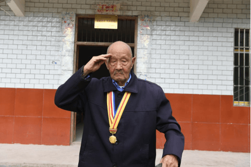 胡显怀行军礼向访问者告别