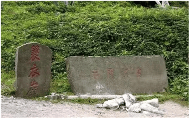 乐西公路著名节点蓑衣岭,两块石碑上刻有“褴褛开疆”“蓑衣岭”字样(图源:抗日战争纪念网)