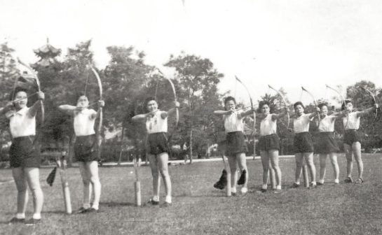 华西协合大学运动场上金陵女子文理学院学生正练习射箭(资料图片)