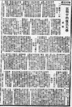 1939年1月3日出版的《新华日报》,在“学校巡礼”专栏中介绍了“抗战中的复旦大学”,这篇报道生动展现了该校西迁北碚夏坝后,师生开展抗日救亡的场景。
