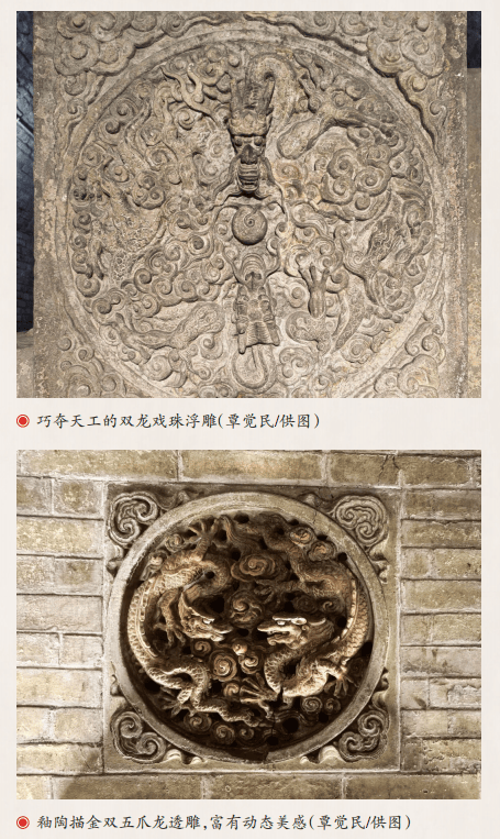 寝殿被中部隔墙分离左右,墙中下部辟一殿,殿中二门半开,俗称“过仙桥”,便于恩爱的昭王与王妃“灵魂”沟通,含蓄而浪漫的设计,穿越五百多年时光,见证伉俪情深、琴瑟和鸣的不渝爱情。其下须弥座两侧各浮雕一龙一凤,标识夫妻梓宫(已不存)分别所在。二人棺床之上均置镂空金钱纹金井,亦填生土,此类形制的金井颇有创意、实属少见。