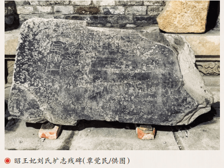 昭王名朱宾瀚,为首代蜀王朱椿玄孙、惠王朱申凿嫡长子,第八代蜀王、明中期著名贤王。十三岁袭封,二十九岁去世,在位十六年间为人仁厚,政绩斐然,“昭”谥为“昭德有劳”之意,弘治帝常赞其贤能,亲赐诗以褒誉,并要求宗室以之为楷模。其墓志铭不见踪迹,仅残损的王妃圹志碑孤独地横卧一侧,“妃刘氏,南城兵马指挥明之女”“妃以贤淑选配……”“……子一人曰让栩(第九代蜀王)”,寥寥数语,勾勒她的一生。