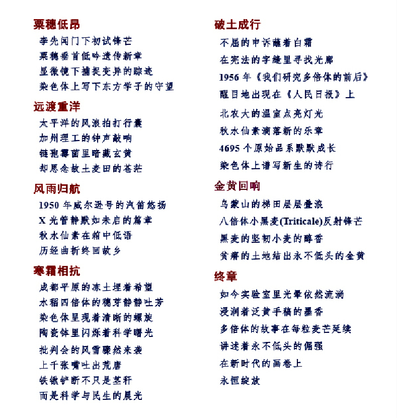 下面首先以《烽火中的金色基因》为序,依次用短文和小诗,致敬赵连芳、杨允奎、李先闻、蔡旭、李竞雄和鲍文奎等中国遗传育种学家。