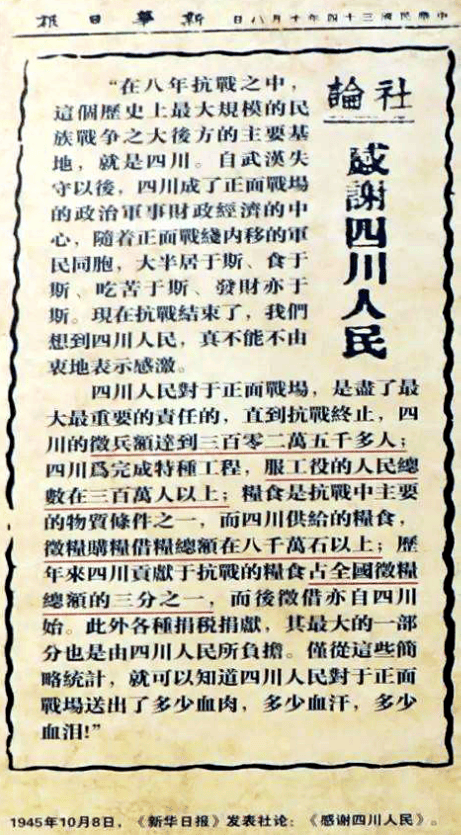 作为抗战大后方的四川,不仅出兵最多、出工最多,而且出粮也最多,承担了全国粮食供应的核心任务。仅全面抗战时期的1941—1945年,四川征收的粮食就占全国总量的约三分之一,其中稻谷占比达38.75%,稻麦合计占比31.63%。
