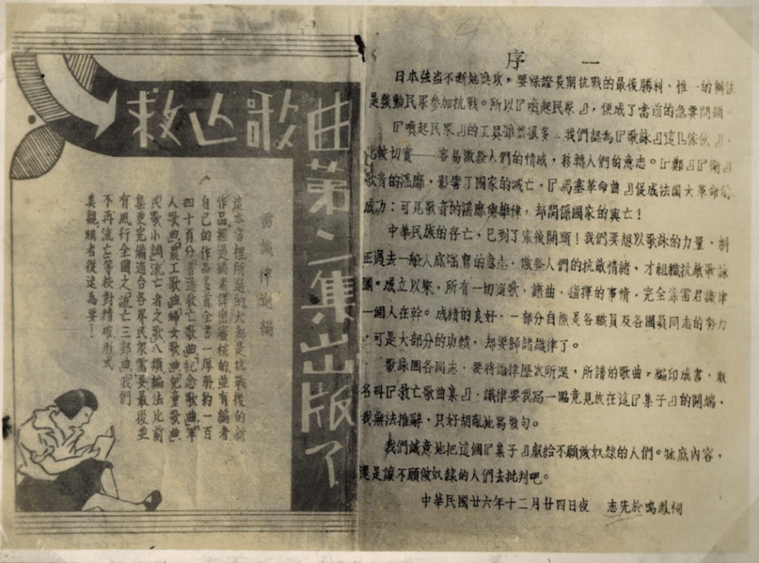 自贡抗敌歌咏话剧团编辑发行及演唱的《救亡歌曲集》第二集