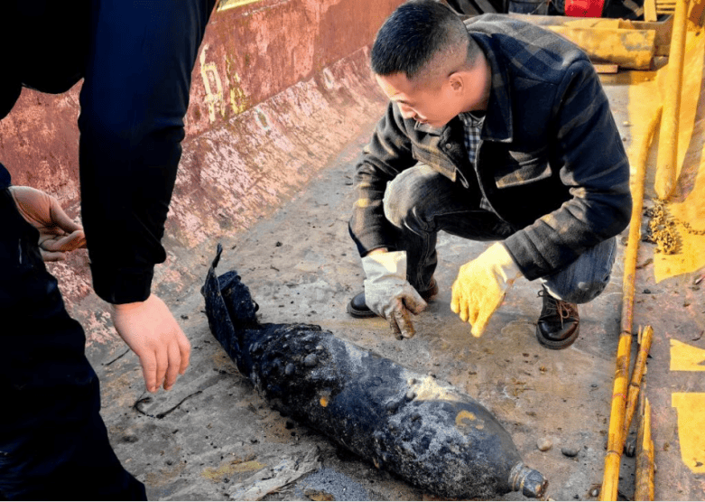 大致情况是:2025年1月11日中午13:55时,乐山大佛旅游投资公司,在乐山城区岷江东岸莲花广场(旧大桥东侧桥头)外河段清理河道施工时,用采砂船挖到疑似航弹一枚,长102厘米,宽(直径)18厘米,重量59.9公斤,弹体封闭无破解,引信完整,存在很大风险。经研判,系抗日战争年代的1939年8月19日,日军轰炸乐山时遗留下的一枚未爆日军97型6号陆军航弹。