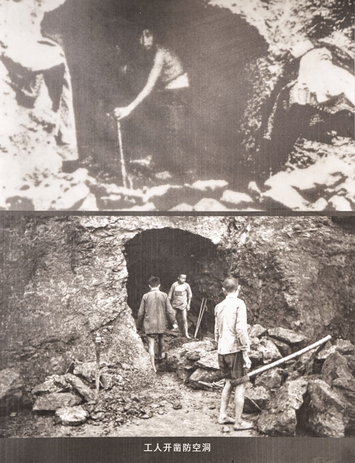 至3月初,市区内就有120处防空洞工程相继开工。重庆市区及周边各县数以万计的石工、民工、泥沙工和运输工,在此以后长达两年的时间里,或用炸药在重庆坚硬的石坡上打眼放炮,或用铁锤、钻子、扁担、箩筐等工具挖沟凿洞,兴建掩体。