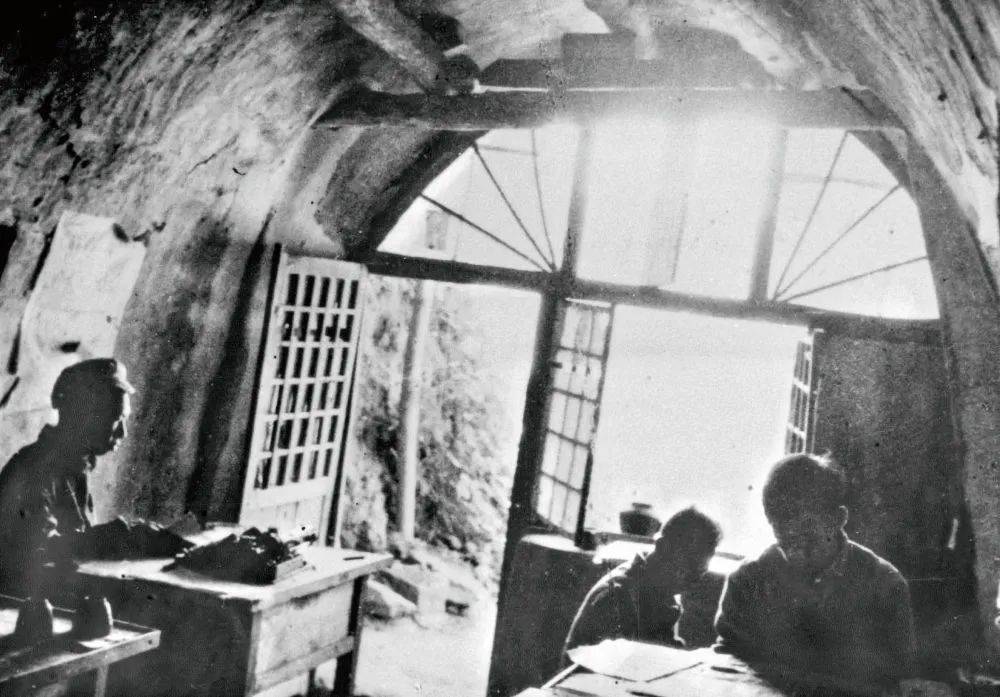 延安时期新华社编辑在窑洞内工作。1937年1月,党中央迁驻延安,这座城市成为敌后抗战指挥中心(新华社发)