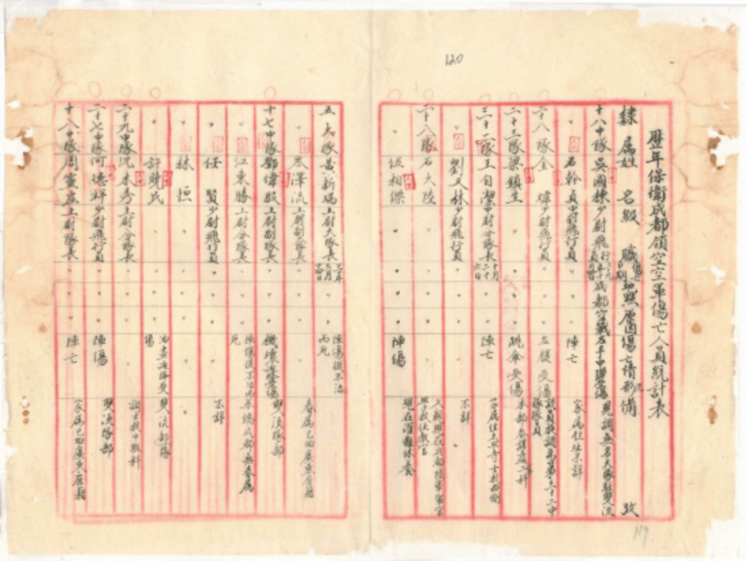 保卫成都领空空军伤亡人员统计表(四川省档案馆 供图)