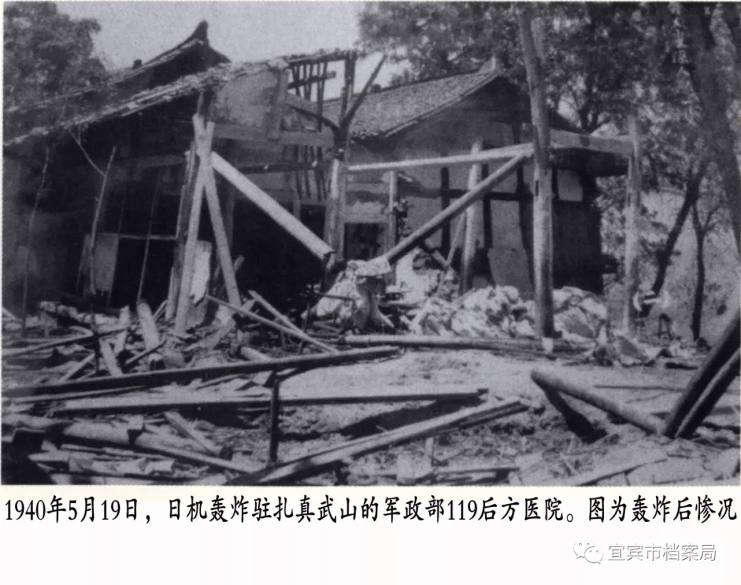 抗日大后方的宜宾,抗战中遭日机空袭达11次,计在市空窜扰4次,在市区和菜坝机场投弹6次,在菜坝机场用机枪扫射1次。第一次空袭是1940年4月23日中午,最后一次是1944年11月10日。在市区和菜坝机场的6次轰炸投弹近2000枚,损失最大的是1941年8月11日第6次轰炸:敌机由湖北分批入川,上午9时20分侵入市区投弹。当天来袭敌机27架,投弹一百多枚(有十余枚未爆炸)。市区中弹街道有39条,炸死100多人,炸伤1000多人,烧毁房屋20多间,炸毁房屋150多间。这天,撕心裂肺的刺耳警报声“呜呜呜”地狂鸣长达近12个小时,宜宾民众在惊恐中经受煎熬。