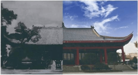 从前文庙大成殿与今日石室文翁讲堂的新旧对比图(图源:成都石室中学)