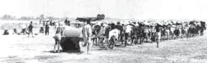 1944年1月中旬,正是寒冬时节。那些穿着冬衣、包着头帕的来自四川各区县的数十万民工带着口粮、铺盖等生活用具,以及斗笠、锄头、箢篼、扁担等生产工具,冒着寒风纷纷涌向新津、广汉等机场建设所在地;在这些民工中,还不乏妇女和孩子。当时参加扩建新津机场的,除了新津本地民工外,还有来自成都、华阳、温江、崇庆、郫县等22个县的各族民工。据计算,仅修建一条跑道,前后就需要投入9万名劳动力。在这场轰轰烈烈的机场修建过程中,B-29轰炸机机场所在地新津、邛崃、彭山、广汉4个县出动的民工最多。据新津老渡口的王姓老人回忆说:“我们整个村子差不多都空了,留在村子里的,除了太老的和太小的,要不就是生病的,其余都去修机场了。这是打日本的事,啥子人要是不去,大家都看不起的。”