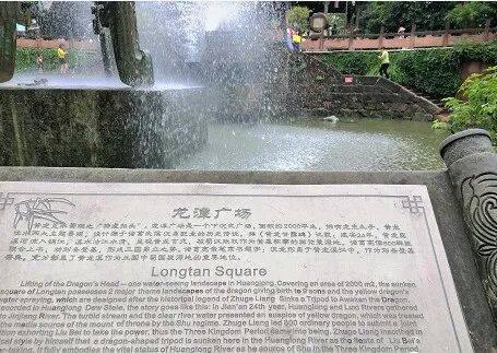 龙潭广场是一个下沉式广场,面积约2000平方米,拥有“龙生九子”“黄龙吐水”两大景观,设计源于诸葛武侯命武士沉鼎配龙的历史传说。