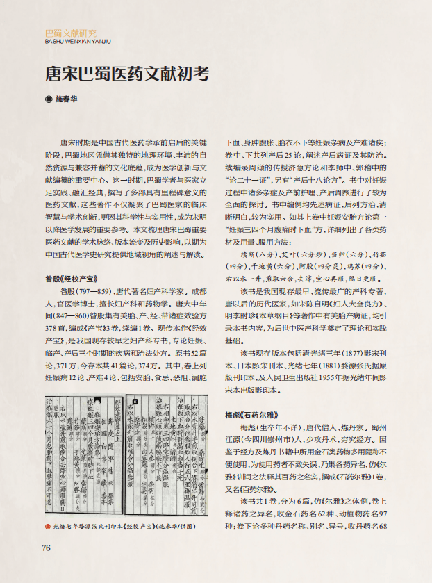 【文史英华】唐宋巴蜀医药文献初考‖施春华