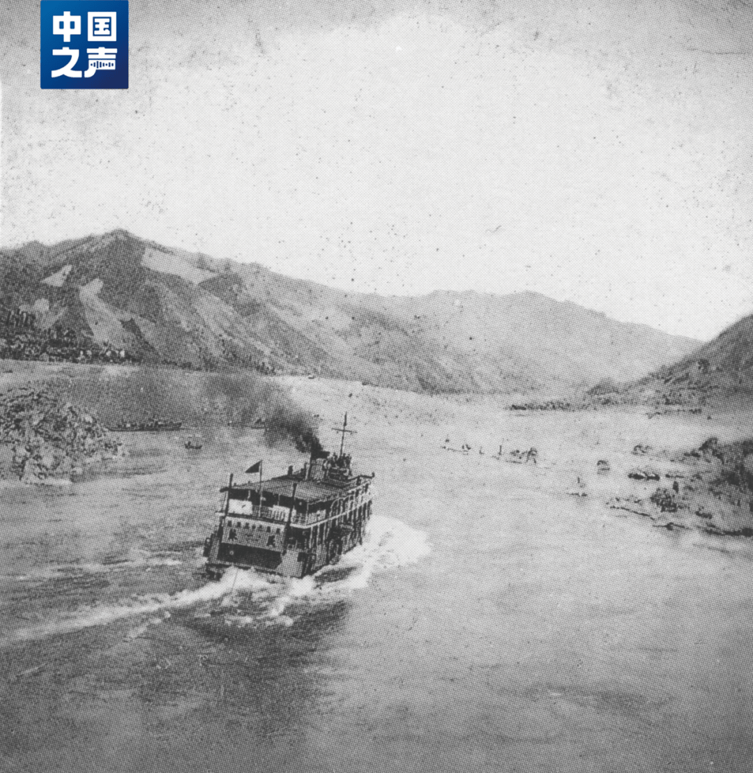 抗战开始,民生公司全力以赴投入战时运输中。图为支援抗战运输的民生公司“民苏”号航行在崆岭(《民生公司90周年纪念刊》)