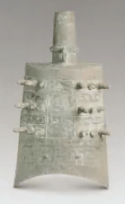 四川博物院称之为“网格状的图像符号”,其实为“甲”,是一件解下来、展开放置的皮质铠甲。“网格状的图像符号”总体呈“十”字造型,《说文解字》云:“古文甲,始于十。”“甲”在商代甲骨文到战国金文时期都写作“十”。“甲”通常被认为是象形字,最早的铠甲是将牛皮之类的皮革,裁剪成一块块皮革片,然后在片上穿孔,用绳串联后编成铠甲。甲片之间呈一个个“十”字形。林义光《文源》云:“甲者皮开裂也,十象其裂文。”基本上也是这个意思。总体呈十(甲)字造型的“网格状的图像符号”上也布满了一个个皮质甲片之间形成的“十”字型,因此是为铠甲之意,将其解下来展开放置,应为解甲休战,也是表达和平之意。据此可以推测甲两边的两口铎,应为象征鸣金收兵的“金铎”。