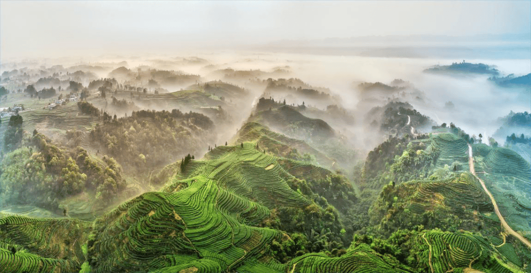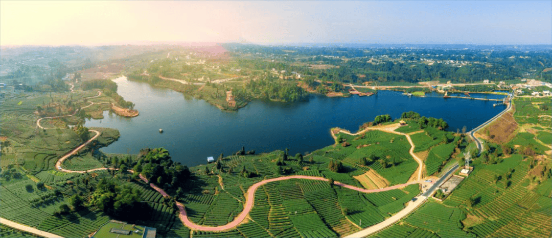 名山以台状丘陵和浅丘(低丘)平坝为主,地势西北高,东南低,蒙顶山、莲花山、总岗山三山环列,地形地貌以台状丘陵和浅丘平坝为主,最高点1456米,最低点548米,属亚热带季风性湿润气候,年均温度适中,四季分明,降水充沛。这种气候适宜茶树等作物的生长,也是名山区“仙茶故乡”美誉的自然基础。百丈湖水源自芦山玉溪河,水质良好,湖面碧波如镜,湖内水产种类、数量繁多,资源丰富,被誉为“南方丝绸之路上一颗翡翠”。按照蒙顶山国家茶叶公园“1+7+N”空间布局,将茶文化历史与现代发展相辉映,打造“花香茶海”,沉浸式、场景化体验茶文化,感受茶文化独特魅力,推进茶旅融合发展,建成100公里中国至美茶园绿道,串联一山(蒙顶山)两湖(清漪湖、百丈湖),连通“禅意茶乡-蒙顶山”“酒乡茶乡-官田坝”“骑游茶乡-红草坪”“科普茶乡-牛碾坪”“水韵茶乡-茅河乡”“梯田茶乡-骑龙场”“浪漫茶乡-月亮湖”等七个各具特色、错位发展的茶乡组团,形成全域旅游新格局。
