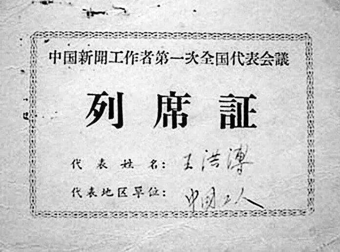 王火“中国新闻工作者第一次全国代表会议”列席证