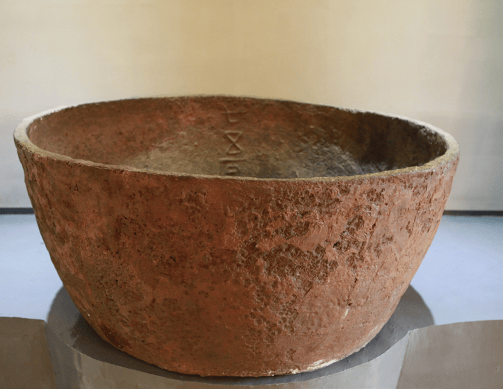 二级文物。汉代,铁器,生铁铸造。口径1.31米,底径1米,高0.57米,厚3.5厘米。1999年7月9日,原蒲江县五星镇河中出土。盐盆又称牢盆,该盐铁盆敞口、方唇、浅弧腹、平底。外壁光洁,盆内壁铸有隶书“廿五石”,意思就是说可以装二十五担卤水。该盆是西南地区唯一发现的汉代盐铁盆。